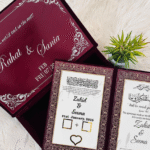 Discover the joy of stress-free wedding shopping at Happy Wife. Let the emotions of your love story shine through with our beautifully crafted Personalized Nikkah Namas, Ring Trays, wedding essentials, invites, and favours.