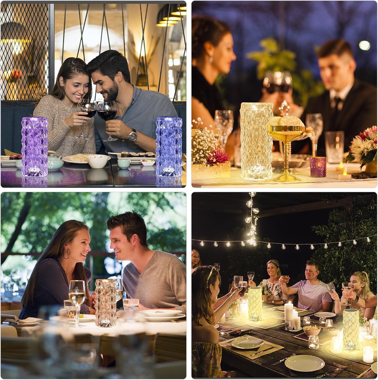 ( Crystal Diamond Table Lamp Touch & Remote) The new concept crystal table lamp is a simple and stylish modern experience. Using 3D technology, light and shadow are intertwined, and a layer of roses of light are bloomed on the tabletop. Make the surroundings of the diamond ambient light full of infinite romance. 6 Levels of Brightness Nightstand Lamp &16-Color Touch Light . (Super Battery Life )Long battery life and convenient charging.