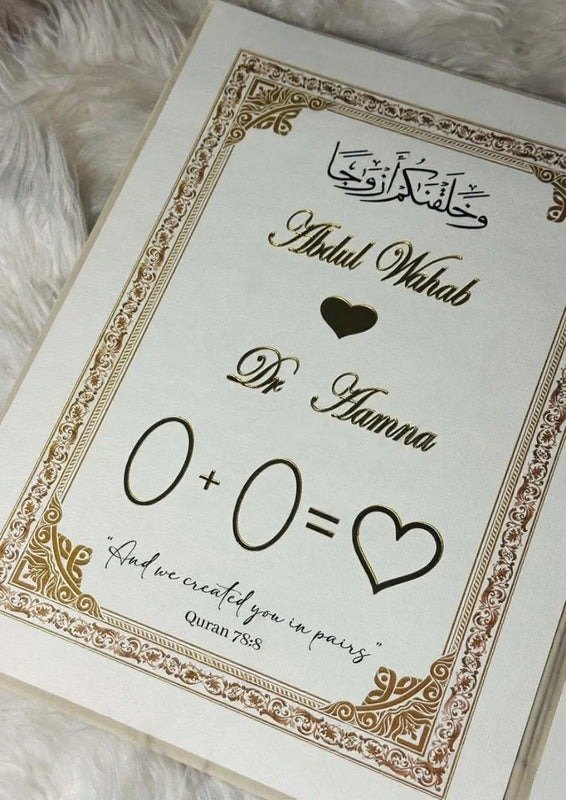 Keep your love story alive with the White Nikkah Booklet with Pen & Box, thoughtfully designed as a beautiful decorative keepsake. This elegant Nikah frame book is covered in soft velvet and features the names of the bride and groom along with the Nikah date, making it a meaningful reminder of your special day. Presented with a matching pen and box, it adds a refined and graceful touch to your home decor. Please note that this booklet is intended for decorative purposes only and is not an official document.